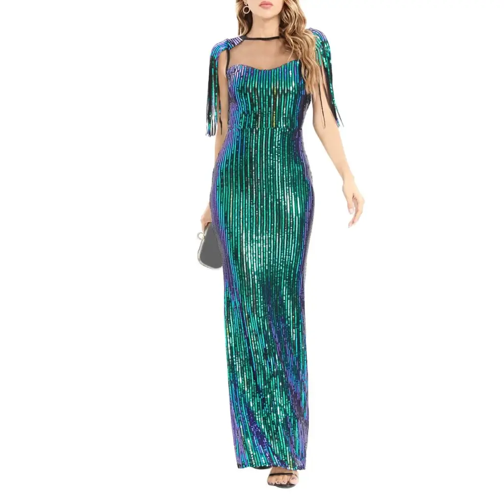 When aiming for glamour and eye-catching sparkle, sequins provide the perfect solution. A sequin emerald green prom dress reflects light dynamically, drawing attention on the dance floor and in photographs. For structural elegance, organza offers a crisp, lightweight option that holds shape beautifully, making it ideal for sculpted skirts, peplum details, or layered designs. Both fabrics allow creative design possibilities, from contemporary glamour to classic statement pieces, making them versatile choices for high-impact prom looks.