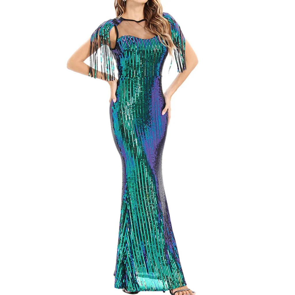 • Evening Prom: Sequins, beading, and embroidered embellishments capture light beautifully under dim or artificial lighting, creating a glamorous and striking effect. Satin, tulle, or layered fabrics further enhance the sophistication and presence of the gown.