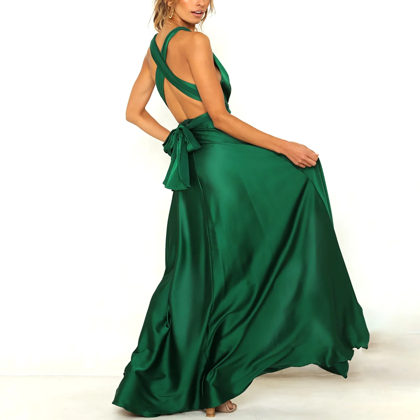 The Fashion Elegant Green Satin Evening Prom Dress is the perfect blend of sophistication and sensuality. Its criss-cross backless design and bowknot lace-up feature ensure a secure yet alluring fit, making it ideal for occasions where you want to feel confident and captivating. Crafted from breathable satin fabric, this dress offers comfort, elegance, and a subtle sheen that enhances its luxurious appeal. Whether you’re attending a prom, cocktail party, or club event, this dress effortlessly adapts to the occasion.